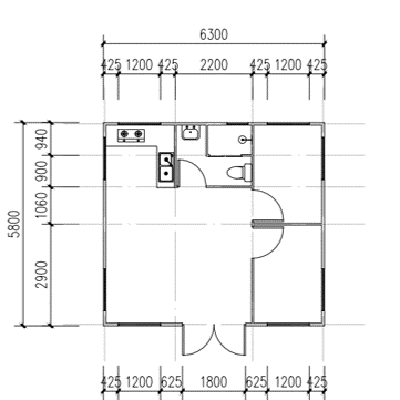 - 1 bedroom, 1 living room, 1 kitchen, 1 bathroom