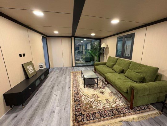 The 74㎡ expandable home is designed for larger families or those seeking a long-term living solution. Its expanded layout delivers generous living space while maintaining the flexibility of a mobile home.